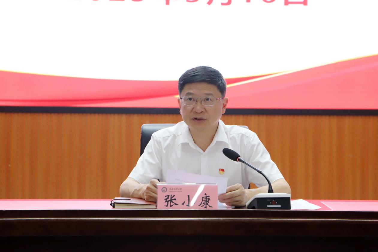 张小康在讲话中强调,各级党组织要进一步提高政治站位,聚焦目标任务,强化责任担当,凝聚工作合力,不断把学习教育引向深入。一要提高政治站位,以“永远在路上”的清醒深化思想认识。全校上下要深刻认识到,作风建设关系党的执政根基,关系学校立德树人根本任务的落实,要以“永远在路上”的清醒与执着,不断深化对学习重要性的思想认识,把学习教育融入日常、抓在经常;要持续深化学习,强化示范引领,抓好警示教育。二要坚持问题导向,以“刀刃向内”的勇气狠抓整改落实。要聚焦群众关切、对标目标要求,建立台账清单,明确责任主体和整改时限,做到立行立改、即知即改、真改实改,确保学习教育成果转化为推动工作提质增效、服务群众的强大动力,切实提升学习教育的针对性与实效性;做到查摆问题不遮不掩,问题研判深挖根源,集中整治真刀真枪。三要健全监督机制,以“严督实查”的力度深化成果巩固。要通过建立动态巡查、专项督查、随机抽查相结合的监督机制,聚焦学习教育重点任务、关键环节,以“严督实查”的硬举措,紧盯责任落实、进度推进和成效转化,对敷衍应付、落实不力等问题敢于亮剑、精准发力;做到严密责任体系,注重分类指导,加强监督检查。四是强化责任担当,以“实干争先”的作风推动事业发展。要始终将强化责任担当作为行动指南,坚持把学习成果转化为攻坚克难、干事创业的强大动能。主动对标对表,以“时时放心不下”的责任感和“事事紧抓不放”的执行力,锚定目标任务,立足岗位职责,积极主动作为;要凝聚同向发力共识,构建协同落实体系,将学习教育成效切实转化为推动事业高质量发展的生动实践,奋力开创工作新局面。