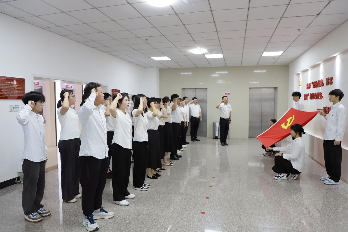 参观前,新发展党员代表和老党员在年轻干部代表、校团委书记郑直同志的带领下,面向鲜红的党旗庄严宣誓,铿锵有力的誓言表达着对党的无限忠诚和为共产主义奋斗终身的坚定决心。新党员代表药学院2022级药学本科1班卢大荣同志在党旗下发言并郑重表态:时时以党员身份为荣,处处以党员标准衡量,充分发挥党员的先锋模范作用,无愧于共产党员的光荣称号。