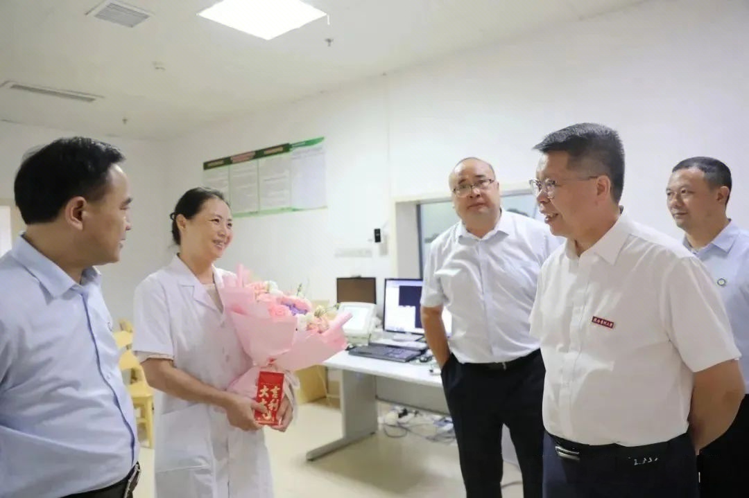 黄海军、刘志平一行到该院看望慰问了一线优秀医师代表肖日海、肖修稷、钟全荣,为他们送上鲜花和慰问金,对他们的辛勤付出表示真挚的感谢,并通过他们向全院医务人员致以节日的问候和崇高的敬意。同时,勉励大家要继续坚守 “敬佑生命、救死扶伤、甘于奉献、大爱无疆” 的职业初心,始终把群众健康放在心上,聚焦群众在就医过程中的 “急难愁盼” 问题,以更精湛的医术、更贴心的服务守护一方百姓健康,为推动区域卫生健康事业高质量发展持续贡献智慧和力量。