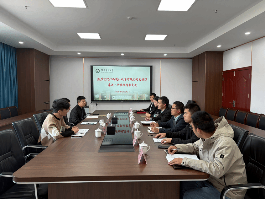 10月24日下午,江西道仕化学有限公司总经理李渊一行来校洽谈交流。学校党委副书记黄瑞忠会见李渊一行。随后,双方举行校企合作座谈,学校党委常委、副校长刘志平主持座谈。科研处、药学院及心脑血管疾病防治教育部重点实验室相关人员参加座谈。