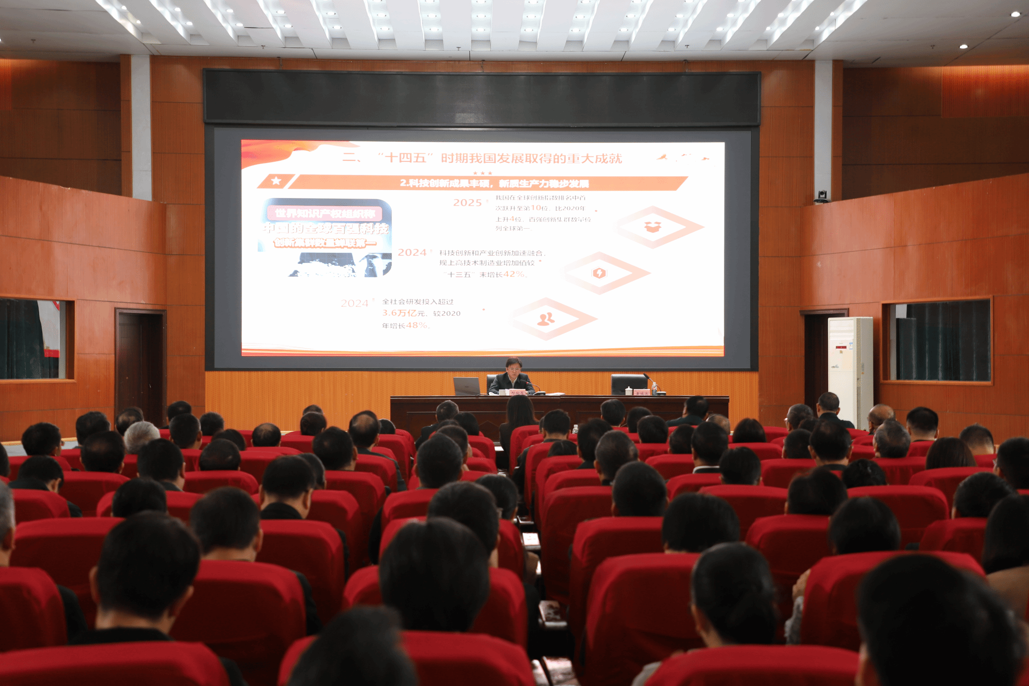 报告会上,邱向军围绕深刻认识党的二十届四中全会的重大意义,深刻认识把握“十四五”时期我国发展取得的重大成就,深刻认识把握“十五五”时期在基本实现社会主义现代化进程中的重要地位,科学认识把握“十五五”时期国内外形势,深刻认识把握“十五五”时期经济社会发展的指导思想、重大原则、主要目标,根本保证,贯彻落实全会精神要着重把握的重点等十个方面,对全会精神进行了系统深入解读。