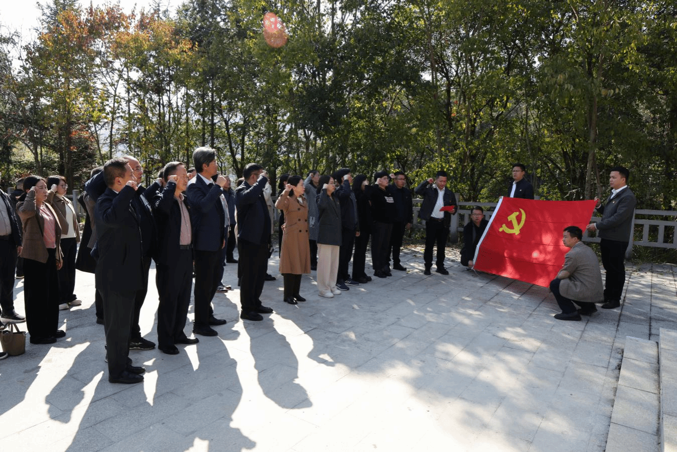 随后,全体人员来到红三军无名烈士纪念碑前,列队肃立,面向党旗庄严宣誓,重温入党誓词。铿锵有力的誓言,既是对革命先烈的深切缅怀与崇高致敬,也是对初心使命的再次铭记与坚定承诺,进一步强化了党员干部的政治自觉和行动自觉。