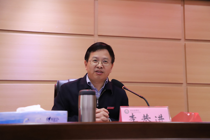 在家的学校领导李恭进、刘潜、曾泽鑫、陈亮、黄瑞忠、肖树辉、张小康、彭维杰出席会议,学校中层正职、正高职称人员和其他教职工代表共108人参会。学校党委书记李恭进主持会议。