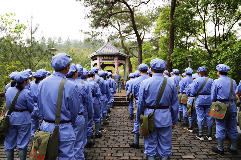 在红军广场烈士纪念塔前,全体学员冒雨列队,向革命先烈默哀致敬、敬献花篮,面对党旗重温入党誓词;在“一苏大”旧址,参与预演选举,高唱《国际歌》;在红井边,尝一尝红井水,缅怀伟大领袖毛泽东。在马道口“长征第一村”,学员们身穿红军服,开展队列训练,颂读《红色家书》,喝一口壮行酒,出发重走长征路,随后模拟闯关夺隘、抢救伤员、爬雪山过草地、飞夺泸定桥······将仪式教学和体验教学相结合,深入体会长征精神。