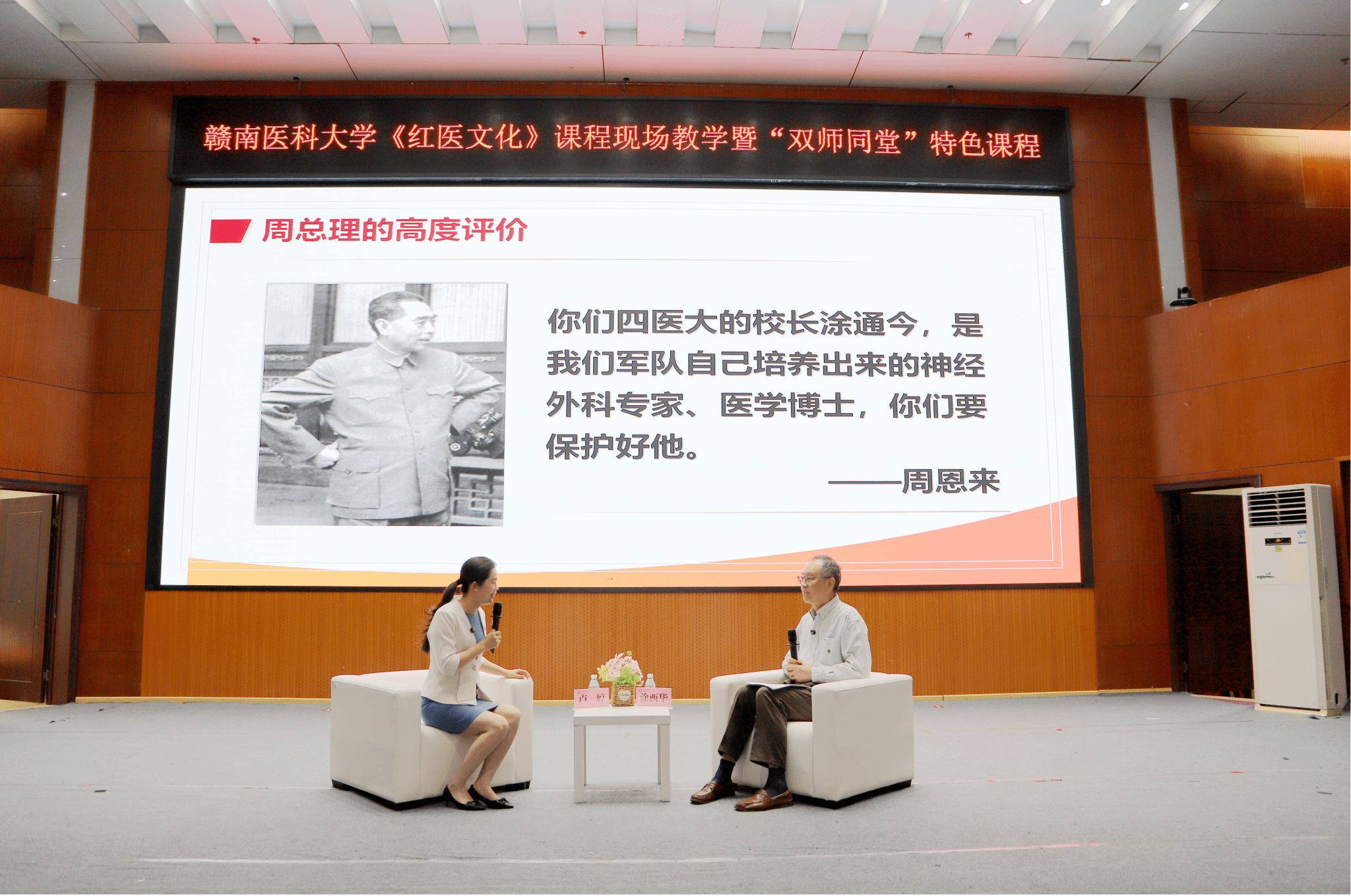 开国将军、红军博士涂通今之子涂西华,曾参加对越自卫反击战,长期从事军队教学与党史、军史研究。在这次访谈式思政课上,涂西华深情讲述了父亲涂通今将军从长征路上的红军战士到开创新中国神经外科事业的医学博士的传奇人生。从放牛娃到共和国将军,从红军看护兵到留苏医学博士,涂通今将军用一生的坚守与蜕变,生动诠释了红医人“政治坚定、技术优良,无私奉献、救死扶伤,艰苦奋斗、勇于开创”的核心要义,展现了红色基因与医者初心在赣南红土地上的交汇与传承。