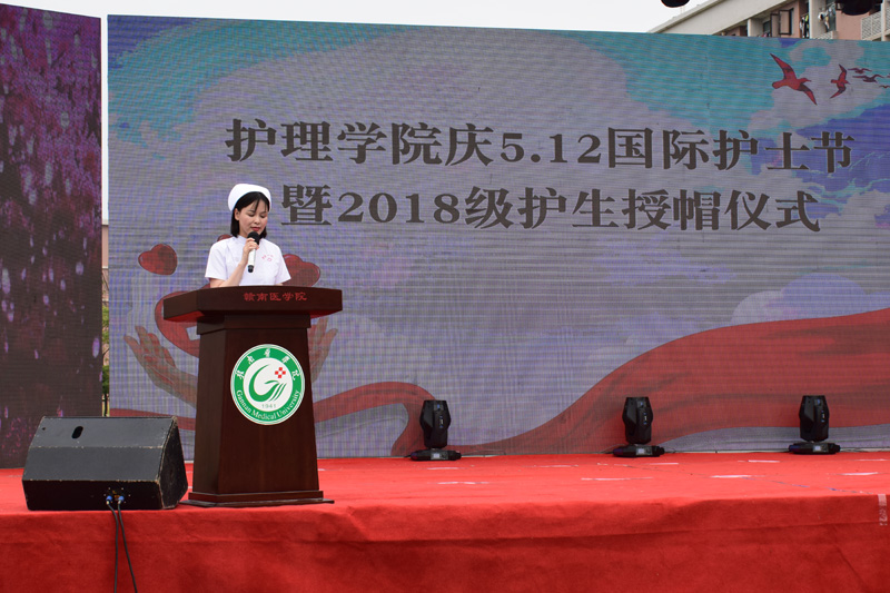 5月11日下午,为迎接第108 个国际护士节的到来,我校护理学院在黄金校区举行庆5.12国际护士节暨2018级护生授帽仪式。邀请赣州市护理学会常务理事代表、赣州市各医院护理部主任和护士长代表、省市优秀护士及护理工作者代表等护理前辈,为该院2018级全体护生授帽。