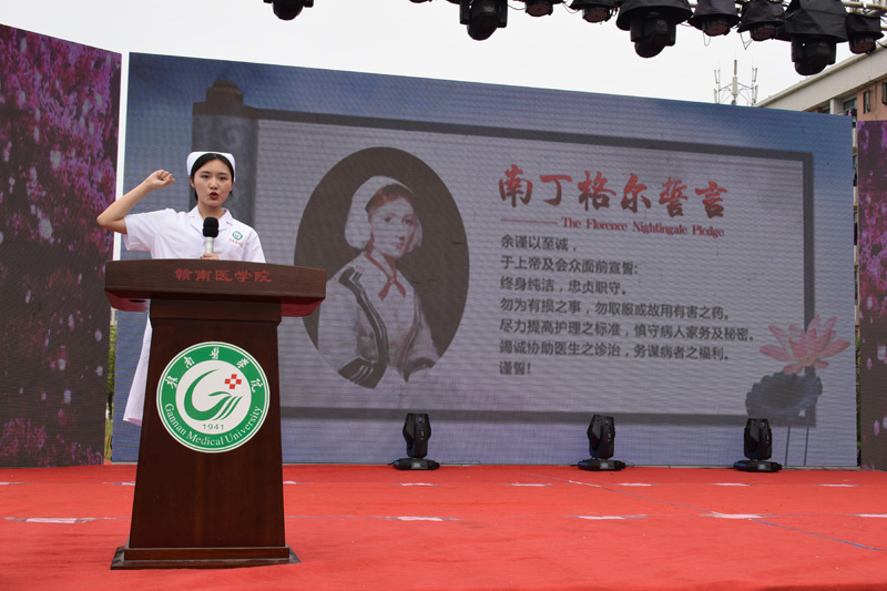 授帽结束后,护生代表为前辈们敬献鲜花,表达心中的敬意和节日的问候。活动在庄严的南丁格尔誓词中圆满结束。