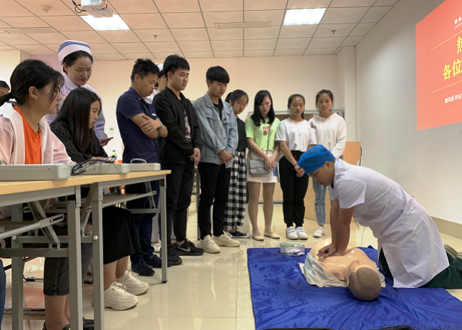 “护士要查看病人情况、配药、输液、辅助检查等,做好了护理工作,病人才能更快康复。”该院护理部副主任彭凤裘讲解护士的日常工作内容及一些护理常识。急诊科医护人员向体验者讲解、演示心肺复苏知识。