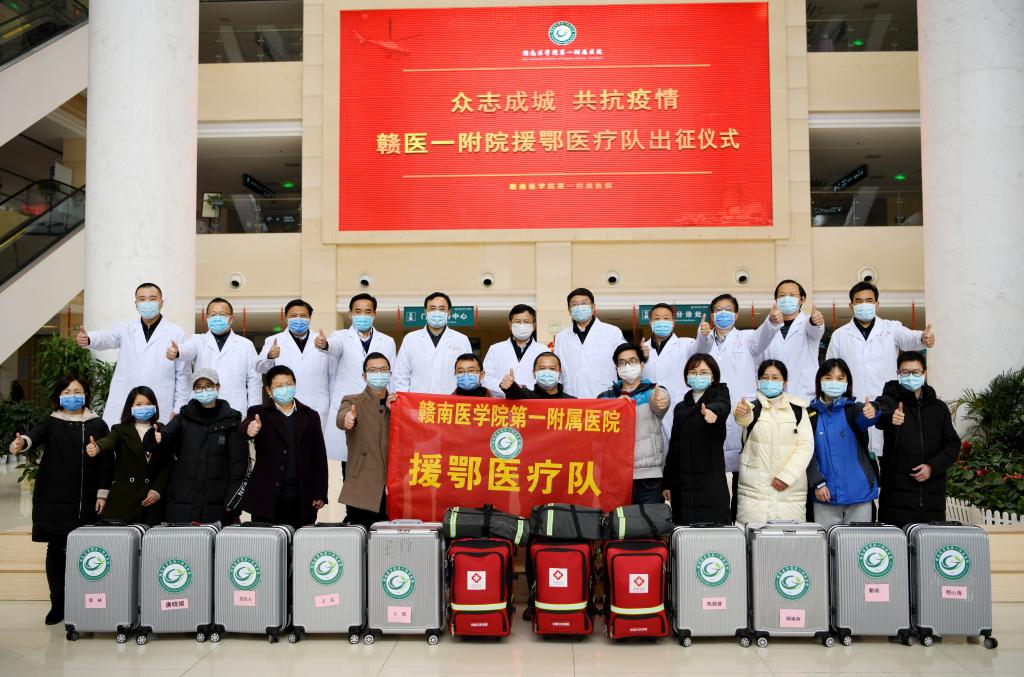 2月11日上午,我校一附院第四批支援湖北医疗队12名队员作为江西省对口支援随州市医疗队成员出征,随即奔赴湖北随州进行医疗救援。