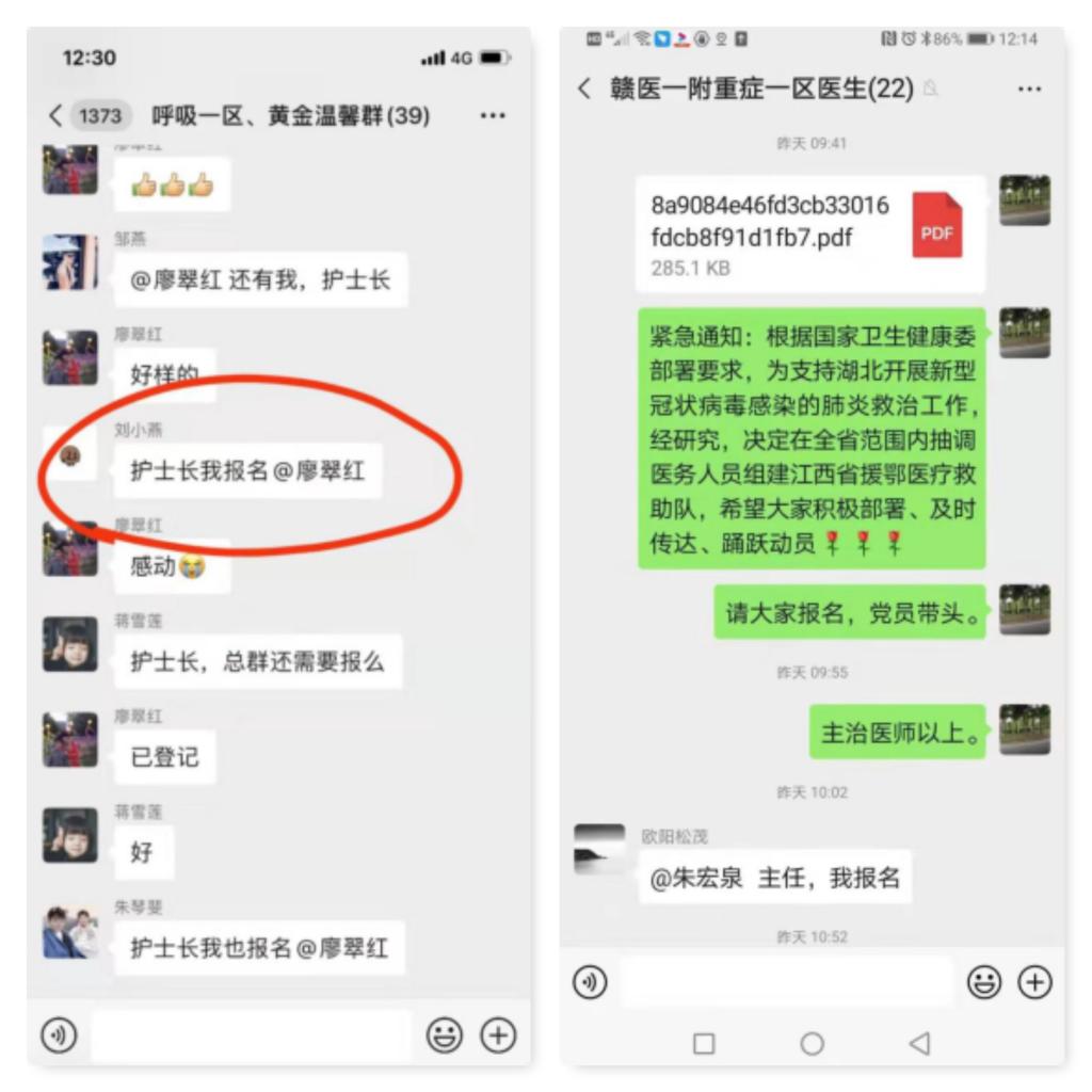 第一附属医院左慧敏、刘先发,第三附属医院吴佳健等党员同志先进事迹被人民日报、江西组工微讯、客家新闻网等主流媒体广泛报道。战“疫”一线涌现出的感人故事和先进事迹不胜枚举,他们不计报酬、不计生死一直在抗疫一线默默地无私奉献。