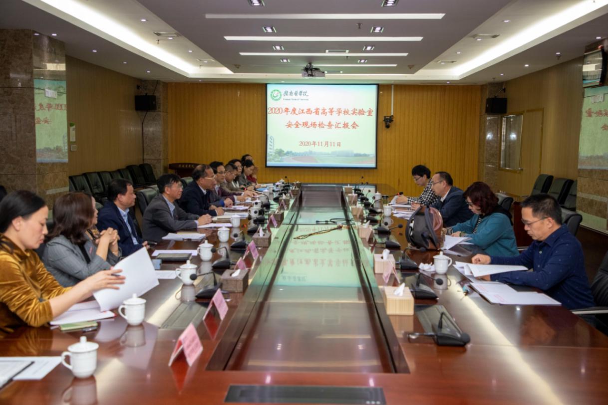 11月11日,江西省教育厅专家组到我校开展2020年度实验室安全现场检查暨 2019 年度整改“回头看”工作。参与此次现场检查专家有江西科技师范大学国有资产管理处处长任辉、江西农业大学国有资产管理处余丽萍教授、南昌大学医学院李刚教授、江西科技师范大学高级实验师李德良。我校党委委员、副校长叶军明,资产管理处、科研中心、教务处、后勤保障中心、心脑血管教育部重点实验室及各二级学院负责参加了汇报会和反馈会。