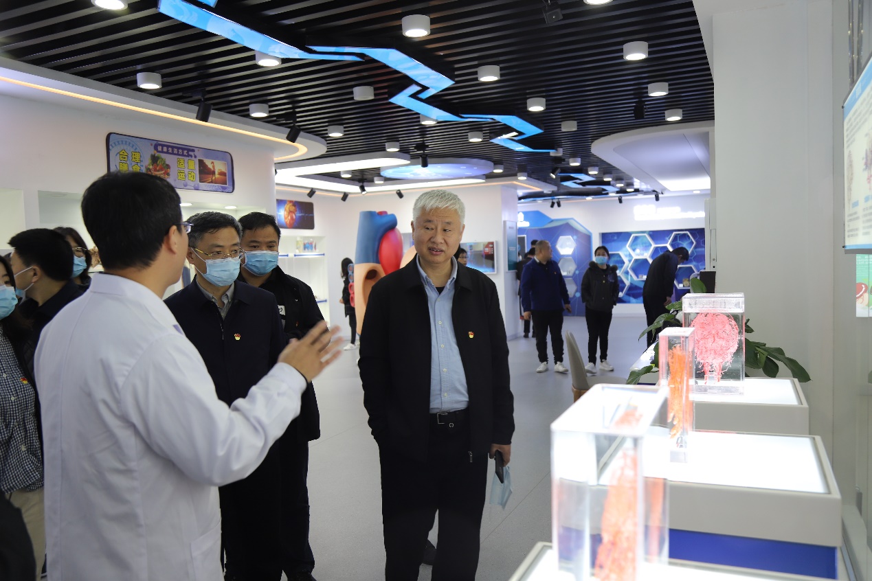 在人体生命科学馆,省卫生健康委的党员干部饶有兴致地参观了“生命之初”“生命之本”“生命之光”3个主模块展区和胚胎发育、运动系统、神经系统等16个功能展区,一件件铸型标本,一段段科普文字,加深了他们对生命科学的认识。