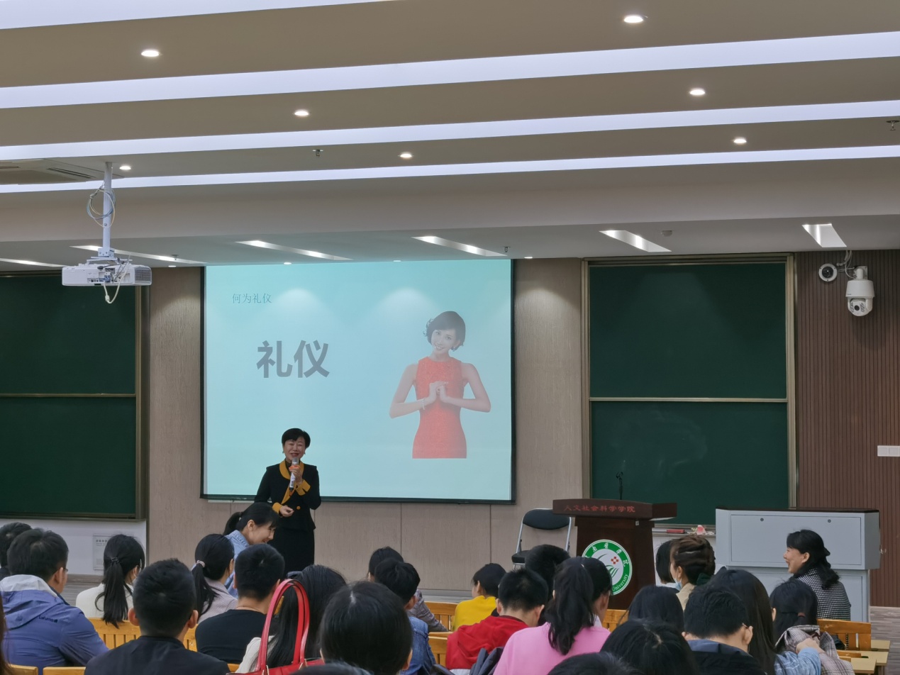 4月27日下午,由教务处、教师发展中心、人文社会科学学院联合主办的学校教师礼仪培训在黄金校区举行。人文社会科学学院院领导,教务处、教师发展中心工作人员、各学院2019年、2020年新进教师代表近130名参加培训。