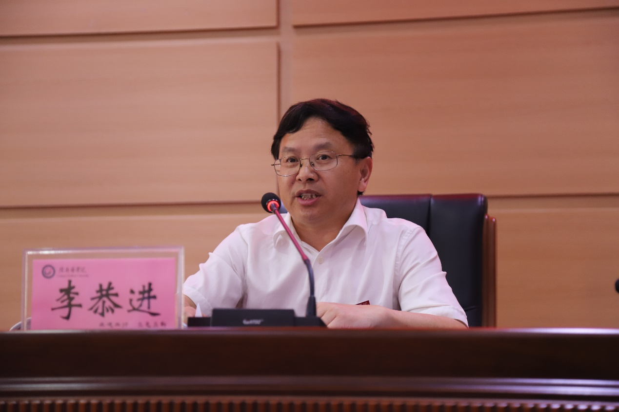 学校领导李恭进、曾泽鑫、陈亮、黄瑞忠、叶军明、肖树辉、张小康、彭维杰出席会议,学校中层正职、正高职称人员和其他教职工代表100余人参会。学校党委书记李恭进主持会议。