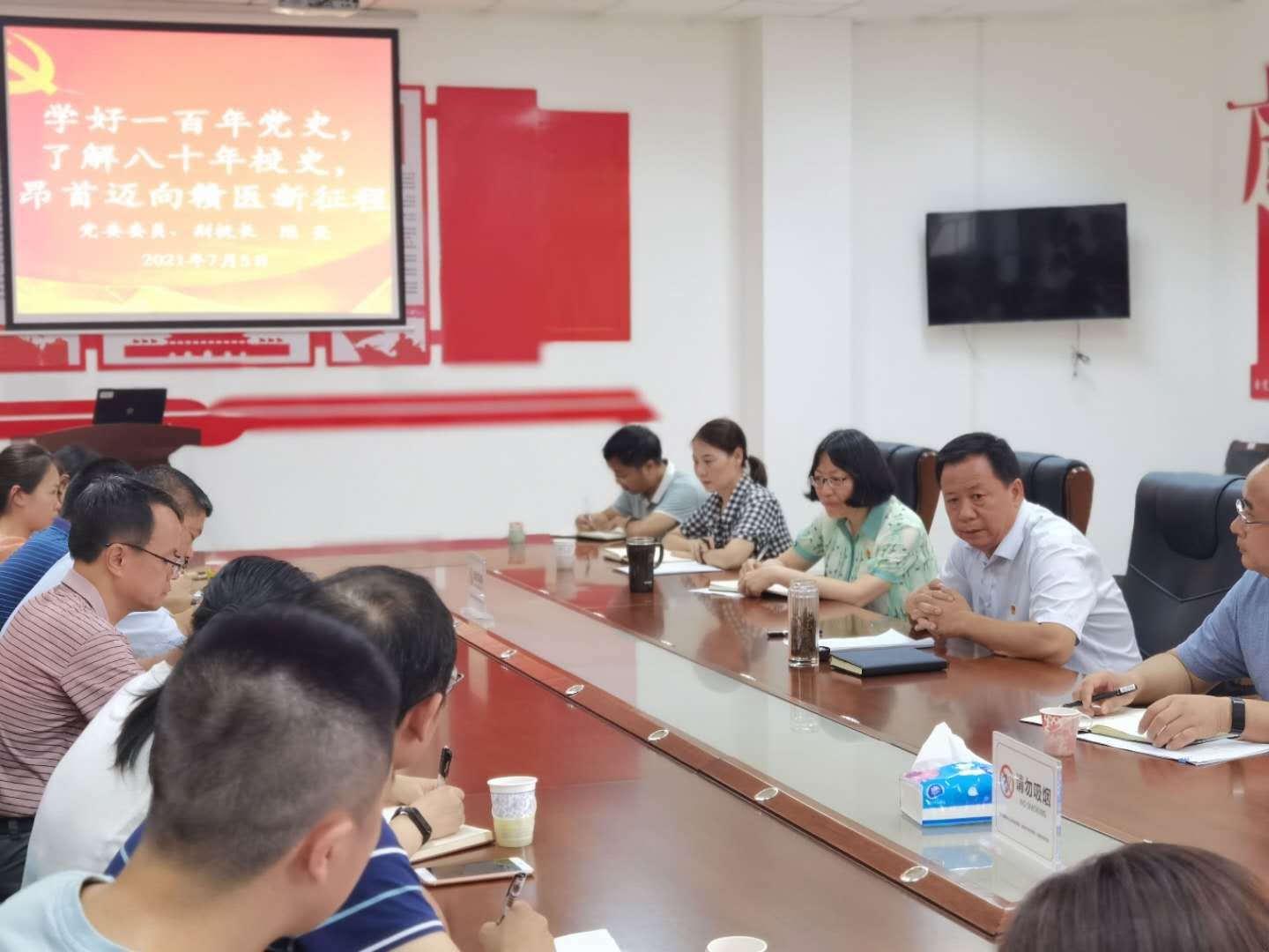 7月2日,学校党委委员、副校长陈亮宣讲习近平总书记“七一”重要讲话精神,并以《学好一百年党史,了解八十年校史,昂首迈向赣医新征程》为题讲授党课。计划财务处、信息技术与网络管理中心、资产管理处、医学信息工程学院及图书馆教工党员到场聆听。