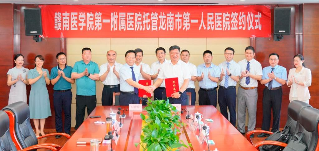 7月8日上午,一附院托管龙南市第一人民医院签约仪式在龙南市人民政府举行。学校党委副书记、校长兼一附院党委书记张小康,龙南经开区党工委书记、市委书记刘勇出席签约仪式并致辞。