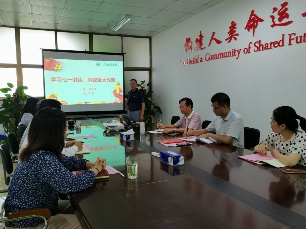 7月13日,学校党委委员、党委统战部部长、机关党委书记赖传景向机关党委第十四党支部全体党员宣讲习近平总书记“七一”重要讲话精神,并上了一堂题为《学习七一讲话,争取更大光荣》的“七一”专题党课。