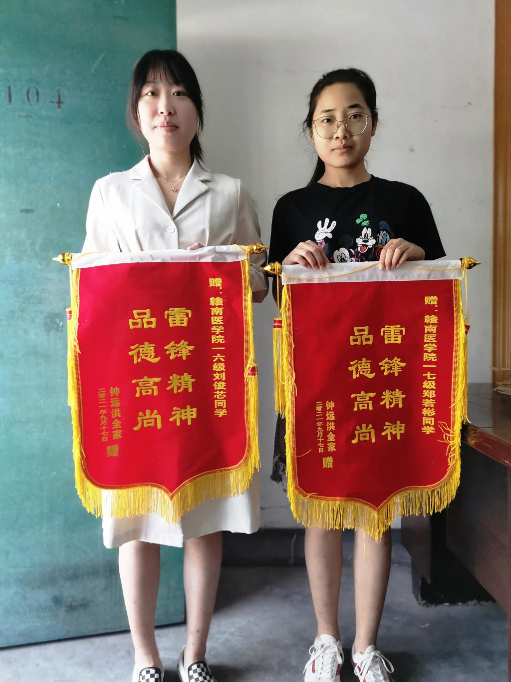 近日,伤者的家属来到学校,送来了两面锦旗,感谢乐于助人的刘俊芯、郑若彬两位同学。锦旗上“雷锋精神 品德高尚”八个大字特别醒目,两位同学在危机时刻挺身救人,用自己的实际行动践行了医学生誓言,诠释了“医者仁心”的深刻内涵,充分展现了我校学子高度的社会责任感和高尚的道德情操以及学校开展仁爱教育的成效。
