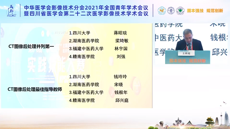 医学信息工程学院2018级医学影像技术专业学生戴晚君荣获DR检查技术并列第一名、刘强荣获CT图像后处理并列第一名,陈婷荣获CT检查技术并列第二名、李昊健荣获MR检查技术并列第三名,该院影像设备教研室教师谢小露获青年教师微课教学竞赛三等奖。第一临床医学院放射学教研室邱兴庭、胡路女分别荣获CT图像后处理最佳指导老师及DR检查技术最佳指导老师。