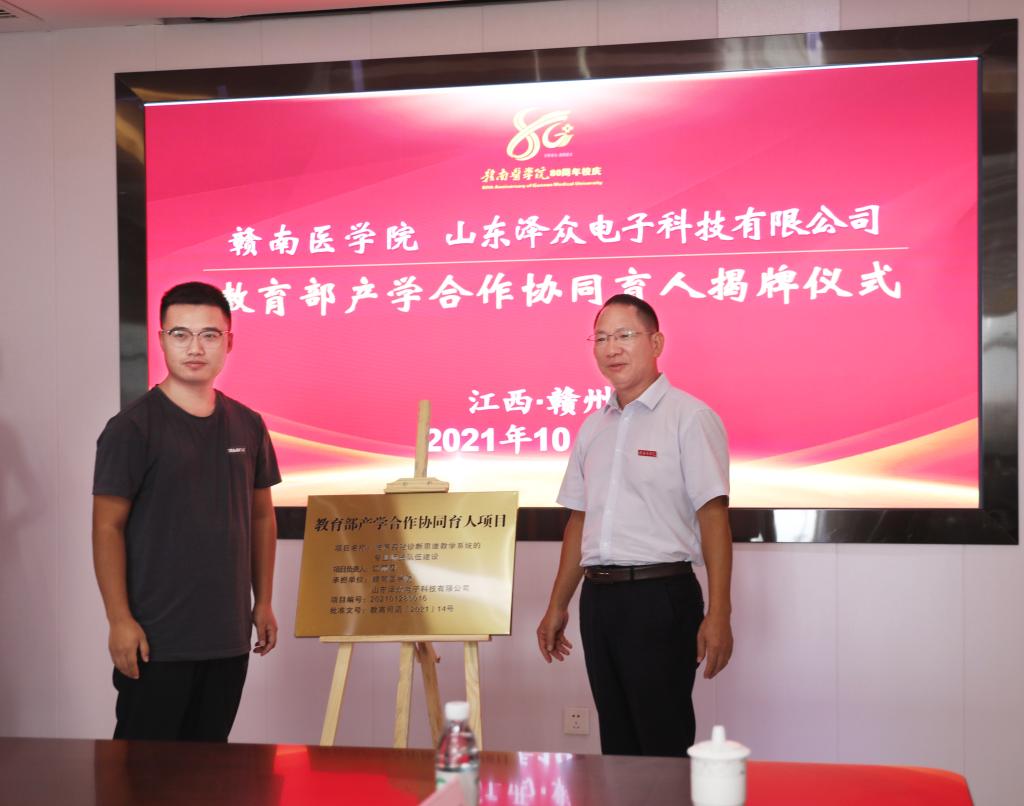 启动仪式上,黄瑞忠代表学校分别与北京超星、山东泽众、上海梦之路为获批的3项教育部产学合作协同育人项目揭牌。