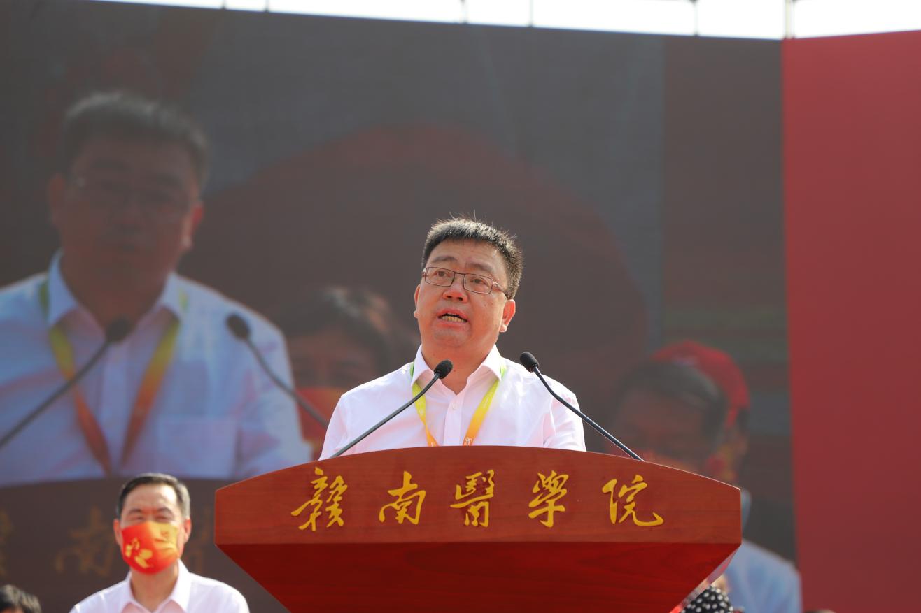 受刘奇书记、易炼红省长委托,江西省人民政府副省长罗小云致辞。他首先代表省委、省政府向赣南医学院全校师生员工和广大校友表示热烈的祝贺,向长期以来关心支持赣南医学院发展的各位领导和社会各界表示衷心的感谢。