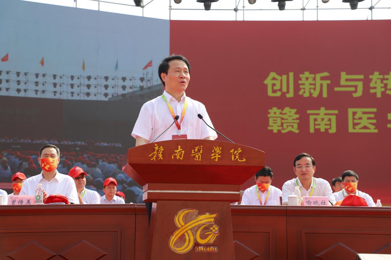 罗小云指出,80年来,赣医始终与民族命运与共,和时代同向同行,承担着为赣南老区培养医学人才和提供医疗服务的双重任务,为赣州乃至江西的卫生健康事业和经济社会发展作出了突出贡献。当前,全省上下正在深入学习贯彻习近平总书记“七一”重要讲话和视察江西重要讲话精神,凝聚全省各方面的智慧和力量,立足新发展阶段、贯彻新发展理念、构建新发展格局,加快推进高质量跨越式发展,奋力谱写全面建设社会主义现代化国家江西篇章,描绘好新时代江西改革发展新画卷,江西的今天和明天,比以往任何时候都更加迫切需要办好高质量的医学高等教育,更加迫切需要医学科技和人才的有力支撑,也将比以往任何时候都更加有力地支持赣南医学院高水平发展。衷心祝愿赣医志存高远,勇担历史使命。始终坚持社会主义办学方向的政治原则,落实立德树人根本任务,努力培养德智体美劳全面发展、富有创新精神、实践能力和社会责任感的时代新人。衷心祝愿赣医初心不改,续写赣医精彩。始终把学校发展放在新时代的背景下思考及党和国家战略大局中定位,坚持扎根赣南、立足江西、服务全国,不断建设一流队伍、培养一流人才、产出一流成果。衷心祝愿赣医融合发展,绽放时代荣光。积极对接国家和省重大战略需求,促进更多的科研成果有效转化,培养更多优秀的医学人才,助力健康中国、健康江西建设。衷心祝愿赣医勇立潮头,厚植创新沃土。持续汇聚医学领域最具创新活力的各类人才,提供一流的学习环境和卓越的学习体验,切实培养学子们的爱国情怀、社会责任、创新精神和实践能力。