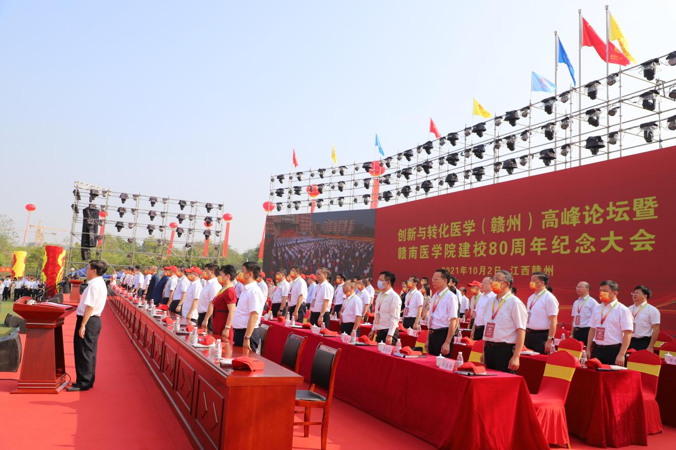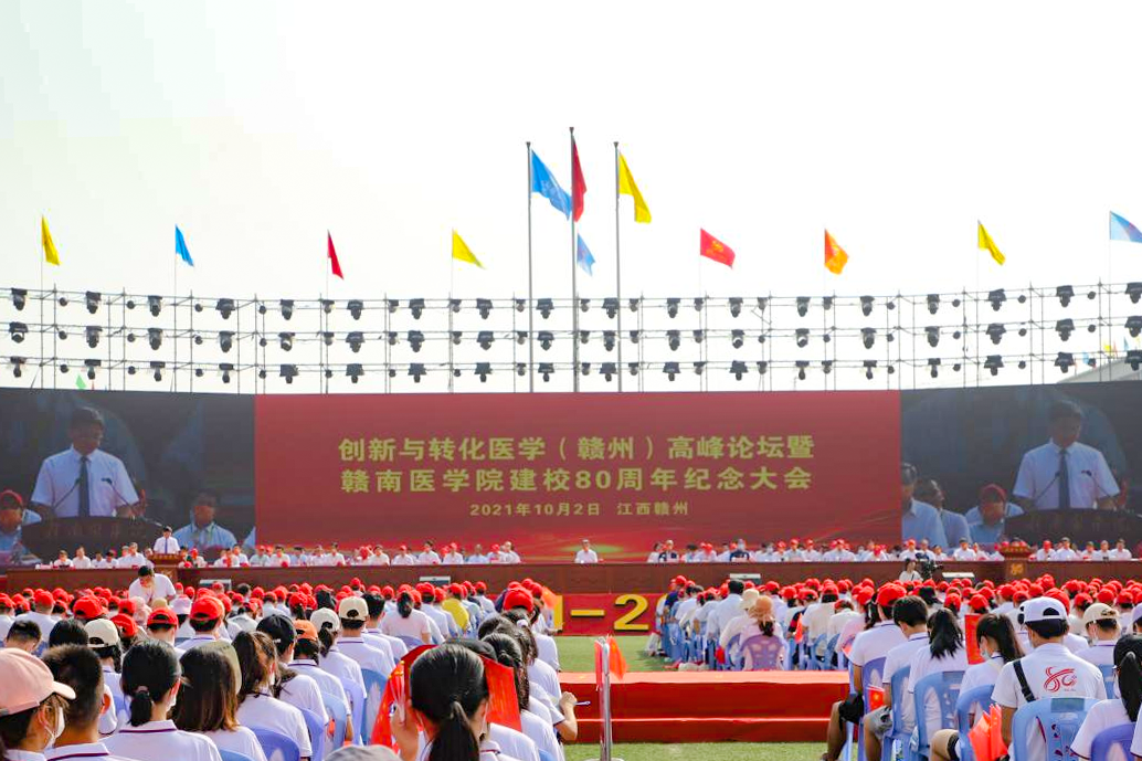 八秩春秋砥砺奋进,与国同庆共襄盛举。10月2日上午,创新与转化医学(赣州)高峰论坛暨赣南医学院建校80周年纪念大会在学校黄金校区隆重举行,各级领导、各界嘉宾、广大校友、全校师生代表欢聚一堂,共同追忆办学历程、见证发展硕果、展望蓝图愿景,欢庆赣医80华诞。