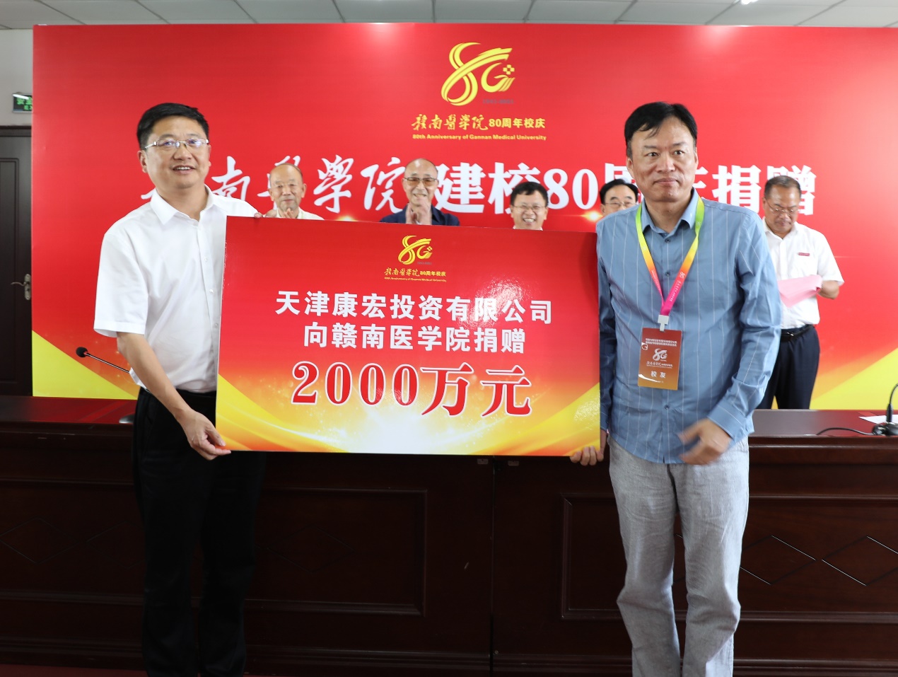 张小康在致辞中向参与此次校庆捐赠的单位、企业以及社会各界人士表示崇高的敬意和衷心的感谢。张小康表示,通过一代代赣医人的接续奋斗,学校已走过80年的光辉历程。近年来,学校紧盯“更名大学”目标,深入推进“五大工程”建设,凝心聚力、加压奋进、攻坚克难,人才培养质量不断提高,学科建设特色凸显,科研实力显著增强,校园面貌全面改观,综合实力和社会影响力持续提升,走出了一条具有赣医特色的医学教育发展之路。张小康指出,学校成绩的取得,离不开所有赣医人和衷共济与孜孜追求,更离不开社会各界、广大校友的风雨相伴与鼎力支持。各教学医院、实习医院和友好医院持续为赣医学子提供优越的教学和实习条件,为学校人才培养贡献了重要力量;广大校友始终心系赣医,用心用情予以母校支持,源源不断为学校发展提供强大动力;还有社会各界爱心企业和友好人士,在此次校庆活动中积极捐款捐物,以行动践行着对赣医的美好祝愿。张小康强调,学校将始终牢记为党育人、为国育才的初心使命,落实立德树人根本任务,坚持改革创新发展,为国家培养更多德技双馨的有用之才,力争早日建成特色鲜明、人民满意、国内知名的高水平应用型医科大学。