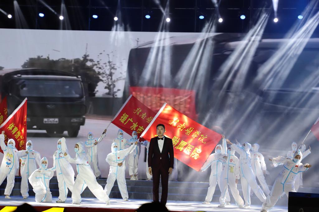 白衣执甲,以生命护佑生命。第一附属医院带来音诗画《为了谁》,讲述赣医115名白衣战士闻令而行逆行援鄂的感人事迹。