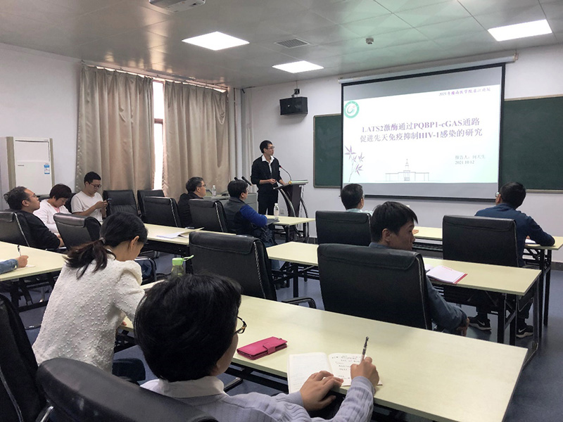 何天生以《LATS2激酶通过PQBP1-cGAS通路促进先天免疫抑制HIV-1感染的研究》为题,介绍了细胞内环境稳态和抗病毒防御之间的关系的机制深入研究,何博团队发现LATS2可以与cGAS的协同受体PQBP1相互作用,从而增强cGAS-STING介导的对HIV-1诱导的先天免疫应答;并通过该研究建立了Hippo信号与天然免疫之间的新联系,可能为抗病毒治疗提供新的潜在干预靶点。