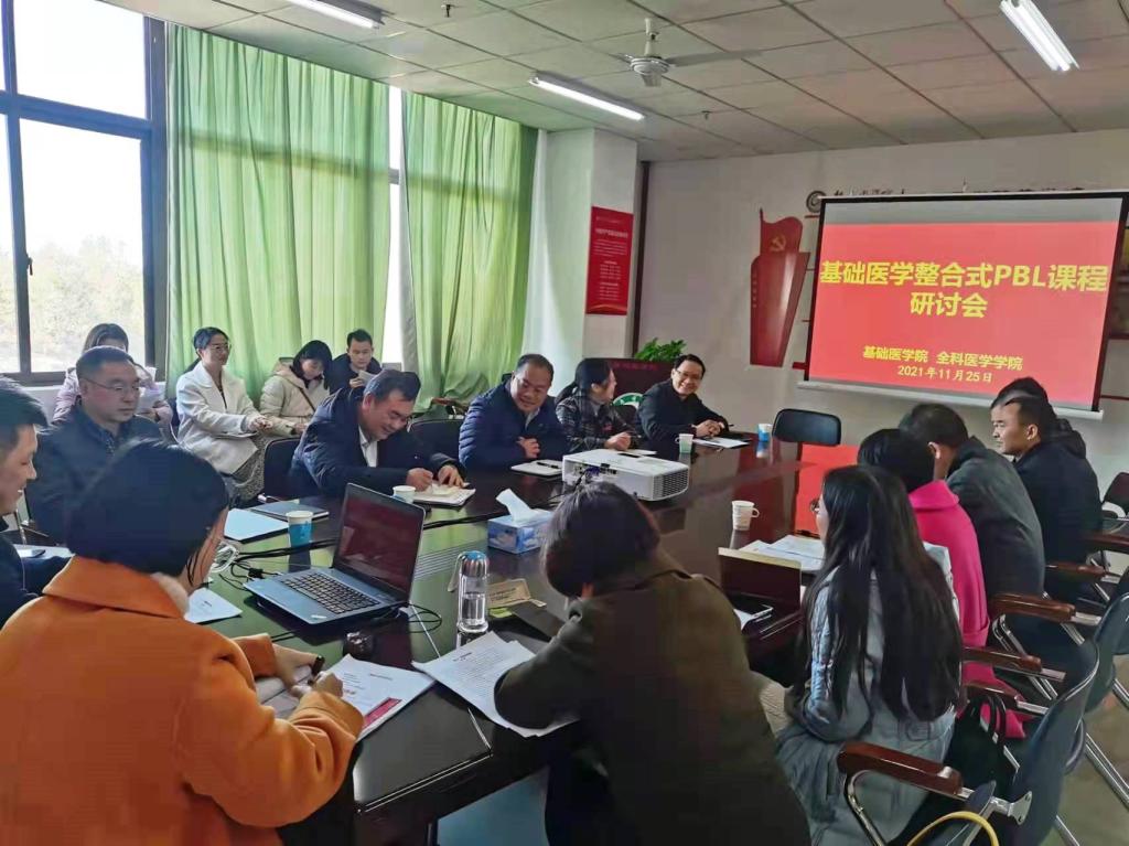 11月25日,基础医学院与全科医学学院联合举办了基础医学整合式PBL课程研讨会。学校党委委员、副校长叶军明出席会议。基础医学院党委书记颜剑、院长谢水祥、全科医学学院副院长罗晓婷、基础医学院与全科医学学院各科室主任、副主任及教师代表参会。