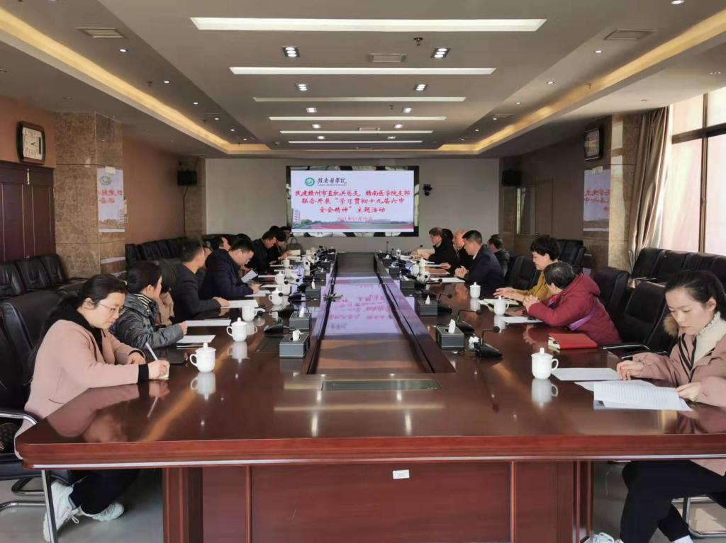 12月19日下午,民建赣南医学院支部、赣州市直机关总支在我校黄金校区联合组织召开专题学习座谈会。学校党委委员、统战部部长赖传景到会指导并致辞。民建市委会主委雷鸣等,参加会议。