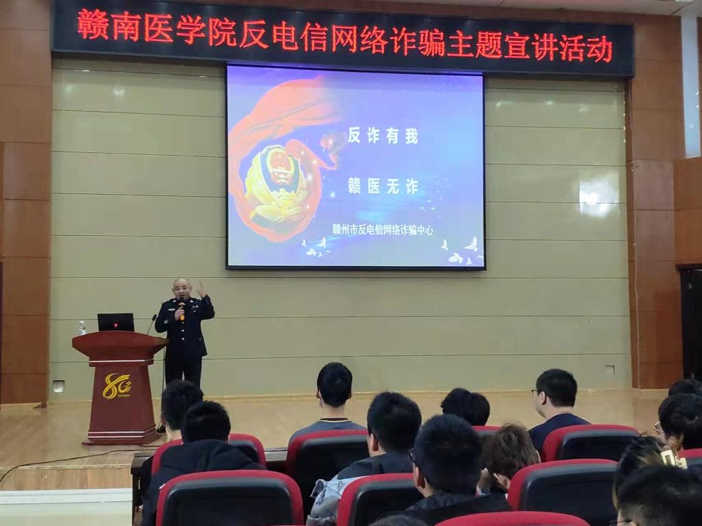 3月8日晚上,学校防范电信网络诈骗宣传教育联动协调领导小组邀请赣州市公安局反电信诈骗中心民警“刘Sir”刘杰臻到我校开展“反诈有我 赣医无诈”反电信诈骗主题宣讲。