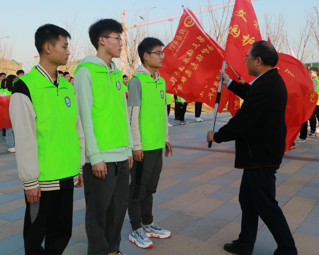 3月8日下午,校团委在黄金校区举行“绿色校园 有我守护”志愿活动启动仪式。学校党委委员、副校长叶军明出席并为志愿服务队授旗。