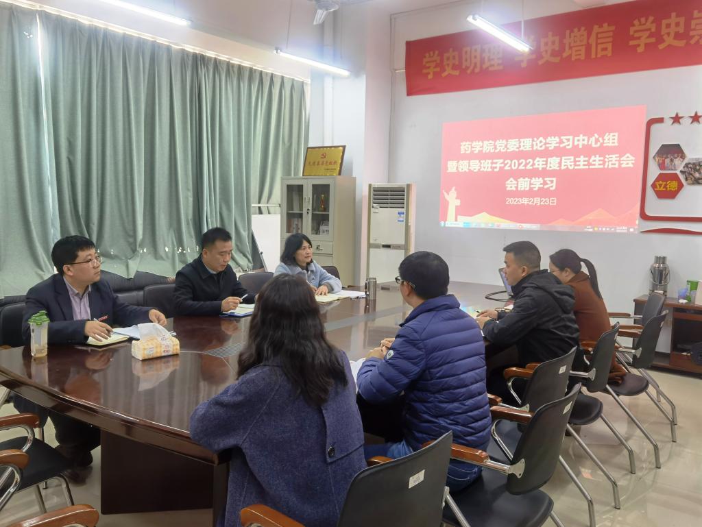 2月23日上午,药学院召开党委理论学习中心组暨领导班子2022年度民主生活会会前专题学习,会议由该院党委书记彭磊主持。
