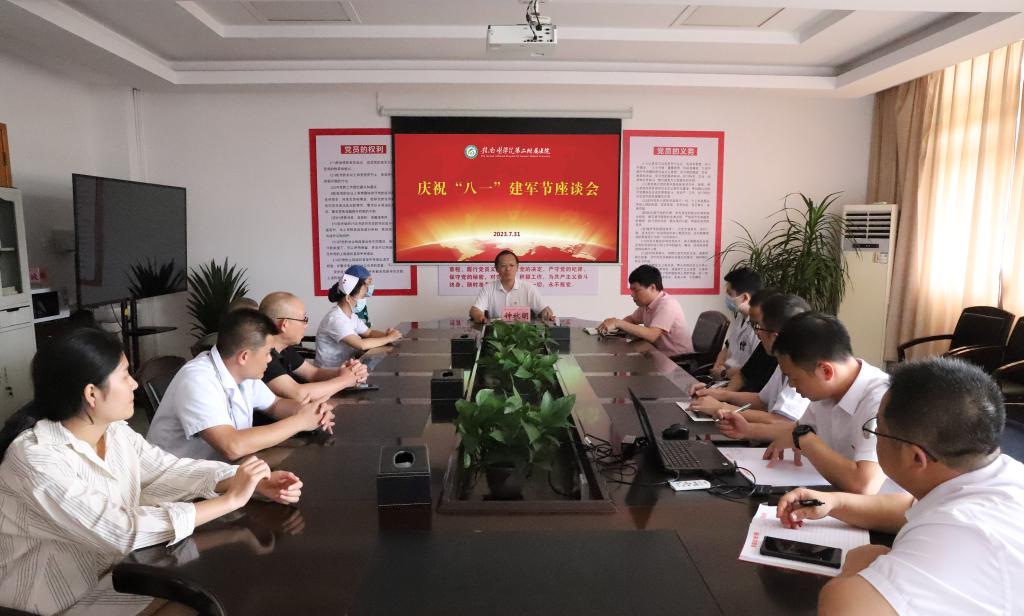 7月31日上午,二附院召开庆祝“八一”建军节座谈会。该院党委书记钟秋明、院长周小青出席会议,相关部门负责人、部分党支部书记、退役军人和现役军属代表参加会议。