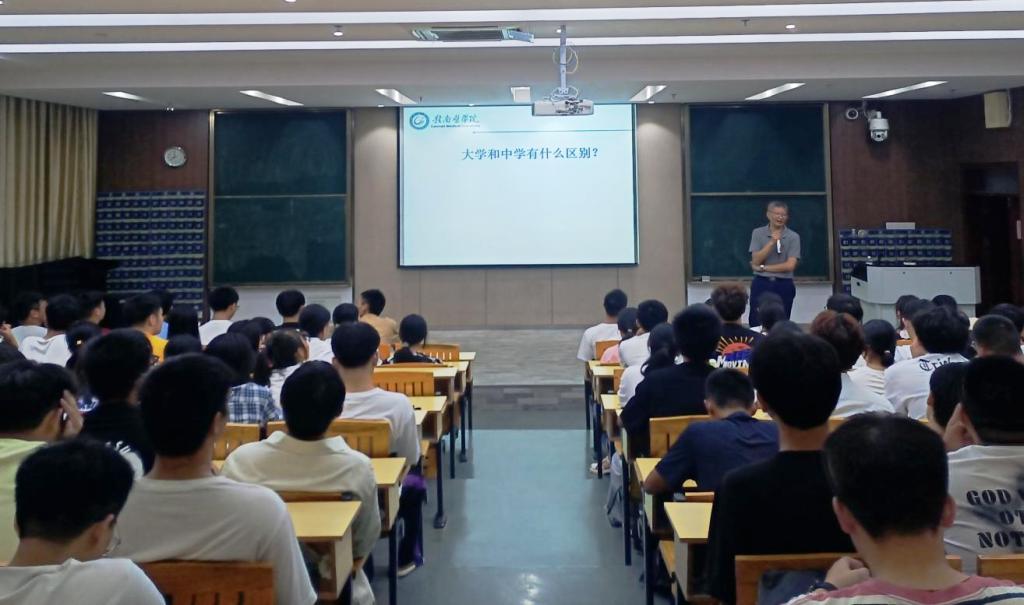 9月14日晚,人文社科学院党委副书记、院长赖日勇为新生作了题为“如何成长为更优秀的自己”的入学教育专题讲座,学工办辅导员及全体新生到场聆听。