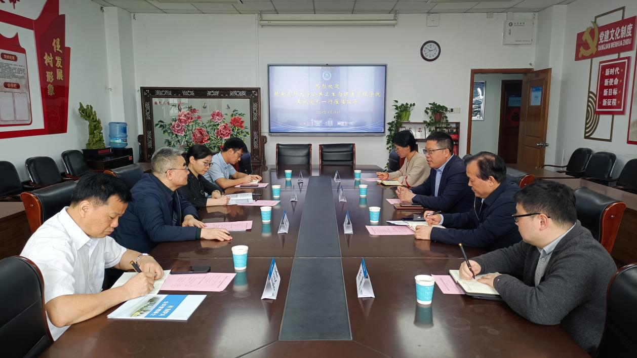 4月19日,公共卫生与健康管理学院院长黄诚带队赴江苏大学管理学院就公共事业管理第二学士学位开设情况进行专题学习考察,江苏大学管理学院院长朱永跃、公共管理一级学科带头人周绿林及相关专业科室负责人参加座谈交流。