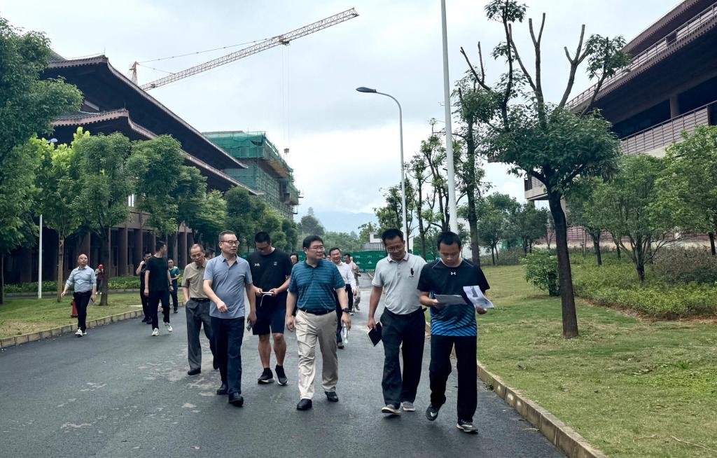 温优良一行抵达龙南校区后,现场参观了龙南校区改(扩)建工程施工现场,重点考察了康复实训楼和体育场馆的建设情况,与龙南校区建设工作筹备组共同实地论证了康复治疗和公共体育教育教学仪器设备拟配置清单的合理性和可行性,进一步调研了相关教育教学场馆布局与用途的优化方案。