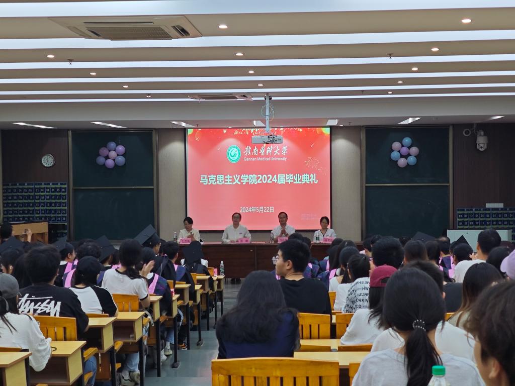 5月22日晚,马克思主义学院在黄金校区举行2024届毕业典礼,学院党政领导班子、全体专任教师、辅导员、2024届本科毕业生、在校生200余人参与,学院党委副书记毛磊焱主持典礼。