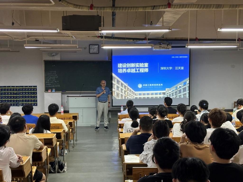 讲座中,汪天富从工程人才培养和创新实验室建设两个方面分享了深圳大学生物医学工程专业创新实验室的建设目的、管理方法、卓越工程师的培养路径、创新实验室的成果转化和推广应用。他以多年的育人经验为切入点,对深圳大学生物医学工程专业以培养卓越工程师为目的的课程体系改革做了经验分享,从课程体系改革引申出的创新实验室建设思路让参会师生对创新实验室的建设方法有了更深入的思考。