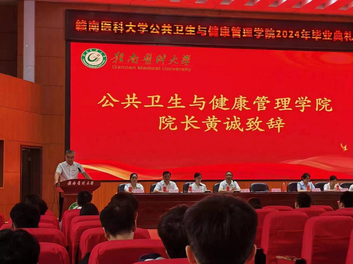 5月29日,公共卫生与健康管理学院在黄金校区举办2024届学生毕业典礼。学院党委书记邱伟、院长黄诚、各专业负责人、全体毕业班班主任及学工办辅导员、公共卫生与健康管理学院2024届毕业生参加。副院长罗江洪主持。