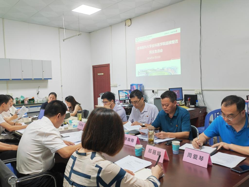6月13日,全科医学院党委召开巡视整改专题民主生活会,学校督导组成员吴平辉、郑丽娟同志到会指导。会议由该院党委书记张自翔主持,该院党委领导班子全体成员参会,党支部书记、师生党员代表列席。