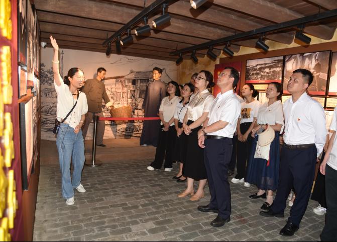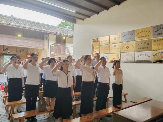 在郭大力故居,师生党员们面向党旗重温了入党誓词。随后,在讲解员的引导下,参观了故居内珍藏的照片、书籍和文献资料,深入了解了郭大力同志的生平事迹。