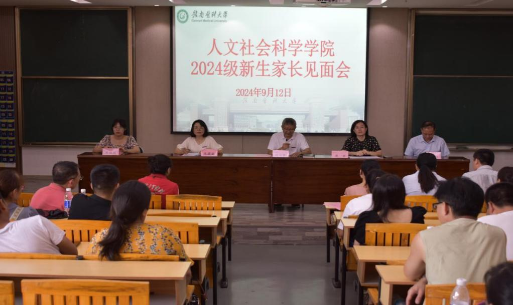 9月12日下午,人文社会科学学院召开“家校共育,共谋成长”2024级新生家长见面会。该院党委副书记、院长赖日勇,党委委员、副院长唐宏,新生班主任、辅导员以及近百位新生家长参加了见面会。学院党委副书记毛磊焱主持会议。