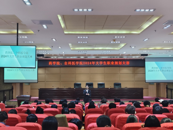 11月24日晚,药学院和全科医学院在图书馆报告厅联合举办大学生职业规划大赛决赛。药学院学工办主任赖清、全科医学院团委副书记黄帝隆、药学院团委副书记袁东波和第一临床医学院辅导员黄成光担任评委,现场200余人参加。