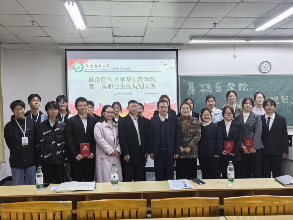 11月28日晚,基础医学院第一届大学生职业规划大赛决赛在黄金校区举行。基础医学院党委副书记刘志春,赣南医科大学司法鉴定研究所所长汪家文,生物技术教研室主任甘滔、团委书记李鑫担任本次大赛评委,基础医学院学生干部、学生代表共计200余人参加本次活动。