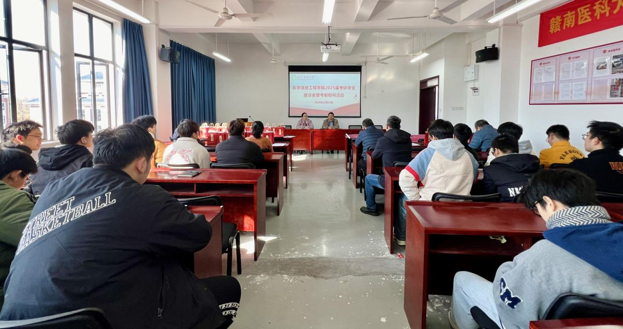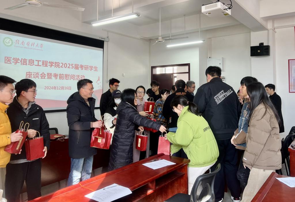 为帮助考研学子坚定考研信心、缓解备考压力,12月16日上午,医学信息工程学院举行2025届考研学生座谈会暨考前慰问活动。该院院长钟海舰、党委副书记王静雅以及辅导员、毕业班班主任、考研学生代表共计50余人参加活动。