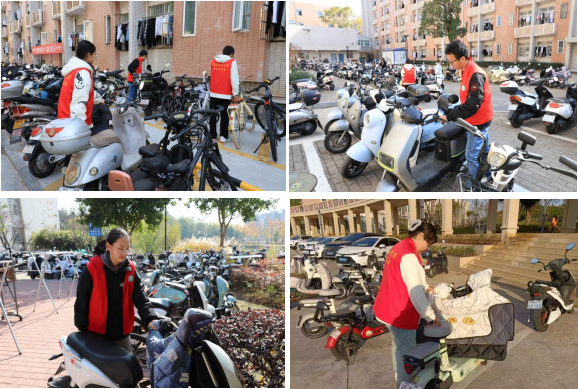 志愿者们还按区域进行分配规整,针对乱停乱放二轮车、占用消防通道和安全出口堆放二轮车等问题进行清理、劝导,确保每一辆电动车都整齐划一地,停放在规定车位上,并向大家宣传文明停放二轮车的重要性,共同维护道路通畅和,校园环境美观。