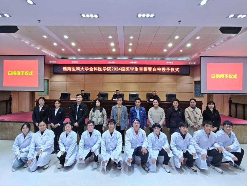 12月26日,全科医学院在黄金校区举行2024级医学生宣誓暨白袍授予仪式。该院党委书记廖信伟、副院长刘清泉,专任教师和班主任代表以及2024级全体学生共计150余人参加。仪式由该院党委副书记、院长黄光生主持。